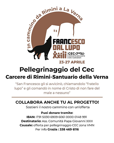 Oggi la nostra foresteria ha ospitato un gruppo veramente speciale. Si tratta di un piccolo gruppo di persone legate alla Comunità Papa Giovanni XXIII fanno parte del “CEC APGXXIII (Comunità Educante con i Carcerati), un percorso educativo, mirato ed impegnativo, realizzato all’interno di sue realtà che non si basa né sul pietismo né sull’assistenzialismo, ma sulla certezza che è possibile compiere un percorso educativo per detenuti in attesa di giudizio (che devono scontare una sentenza di qualsiasi grado). Questo percorso, in collaborazione con la direzione carceraria e con il Magistrato preposto, si avvale di operatori, volontari esterni, (formati e preparati), e personale medico qualificato che accompagnano “i recuperandi” in attività di confronto e lavorative in un percorso rieducativo. All’interno di questo percorso nei giorni 23-27 aprile un gruppo di 17 “recuperandi”, insieme a responsabili e volontari hanno compiuto un pellegrinaggio a piedi, in un progetto intitolato “FRANCesco dal lupo” che nasce con l’intento di offrire un’esperienza di crescita personale e spirituale attraverso un cammino reale e interiore.