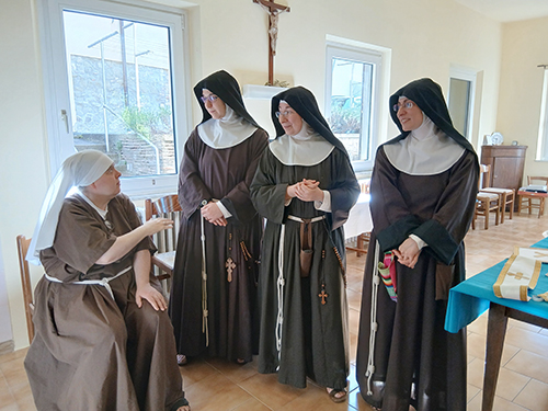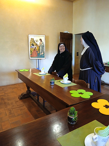 Quest’anno abbiamo pensato di dedicare questa giornata che apre il mese di maggio alla festa della madre Chiara Milena e della fraternità. Si tratta di un giorno particolare nel quale rendere grazie al Signore per il prezioso servizio della nostra sorella Milena alla comunità e del dono che siamo le une per le altre. La lode si è aperta con la celebrazione eucaristica presieduta da p. Giuseppe di Carlo, un caro amico della fraternità dei cappuccini di Cesena; è proseguita con la colazione di festa e l’offerta di piccoli lavori artigianali alla madre perché possa farne dono, secondo le necessità della comunità.