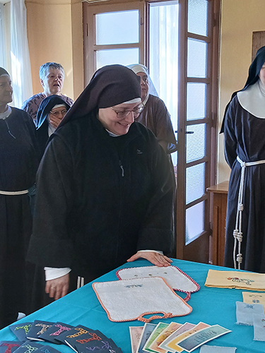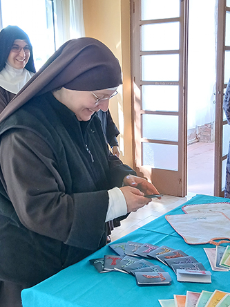 Poi dopo il pranzo di festa in una ambientazione naturale e a base di prodotti del bosco, il pomeriggio ci ha viste impegnate in un bel gioco comunitario, seguito dal tradizionale mercatino nel quale la madre mette a disposizione di ogni sorella oggetti di utilità personale. La giornata si è conclusa quindi con la celebrazione dei vespri nei quali abbiamo restituito al Signore la gioia di averci chiamato al suo santo servizio, nel dono incondizionato di noi stesse perché possiamo rendere sempre più presente il Suo regno, in mezzo ai fratelli. Nel rendimento di grazie per la nostra amata madre Chiara Milena, la affidiamo nuovamente al Signore perché porti a compimento in lei l’opera che ha iniziato.
