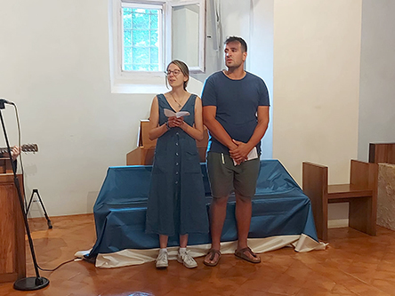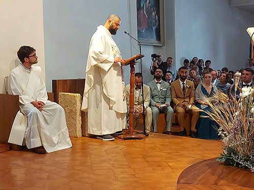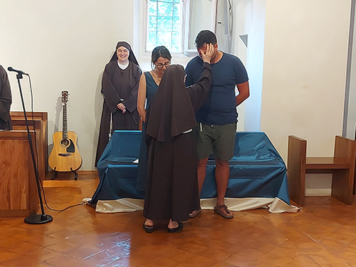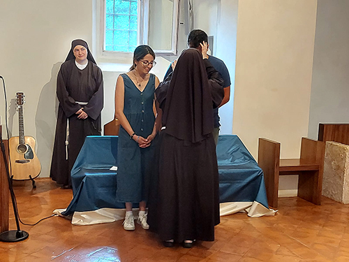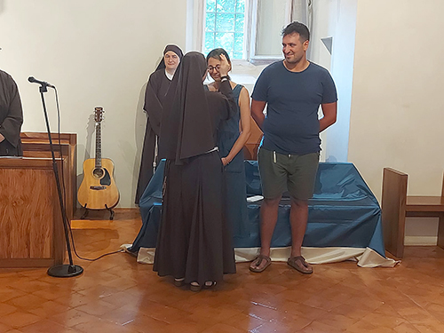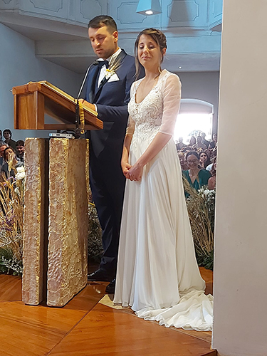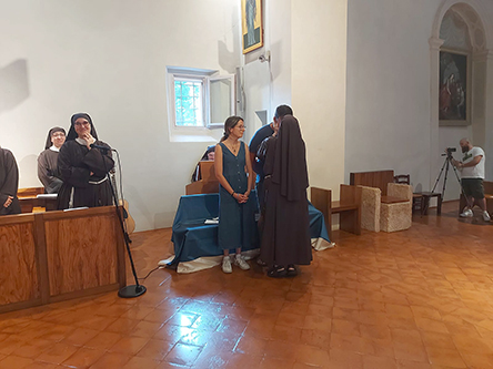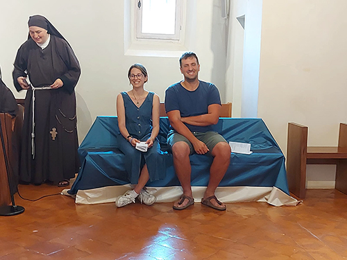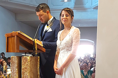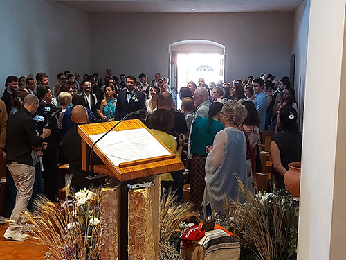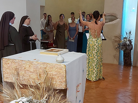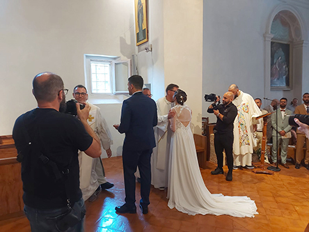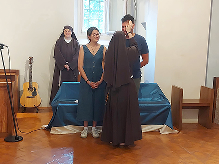 Oggi la nostra piccola chiesa e fraternità è stata testimone del sì per sempre di due giovani a noi molto cari, Giacomo e Beatrice di Senigallia. Dopo un lungo cammino di fidanzamento che abbiamo accompagnato con la preghiera, l’affetto di sorelle e l’ascolto di sr. Rodolfa C., Giacomo e Beatrice hanno chiesto di vivere nella nostra chiesa il loro matrimonio portandovi la gioia dei loro famigliari, degli amici e della loro chiesa diocesana di Senigallia, presente con diversi sacerdoti insieme ai quali hanno camminato per giungere a questo giorno.