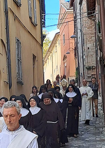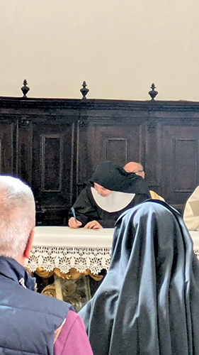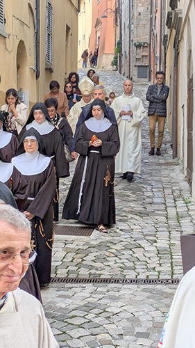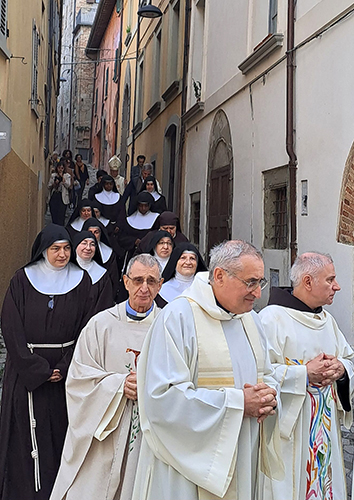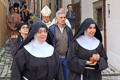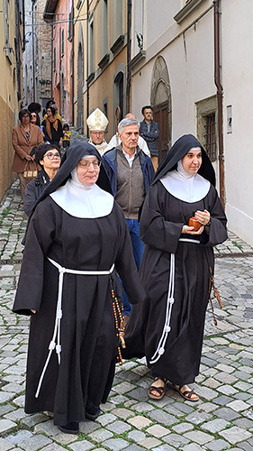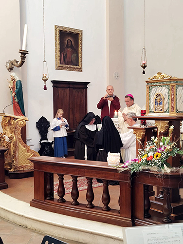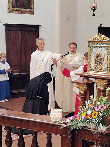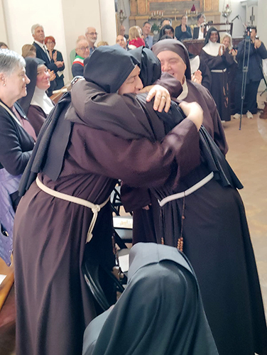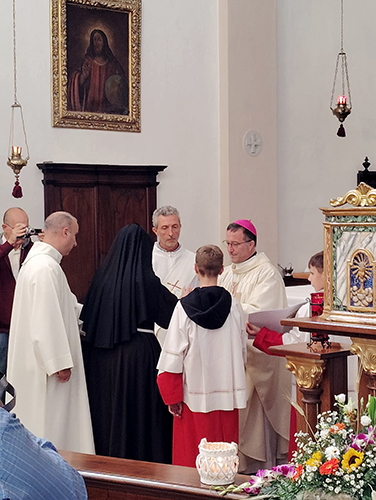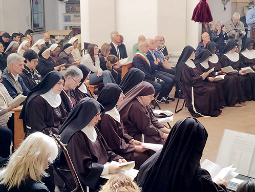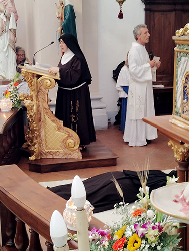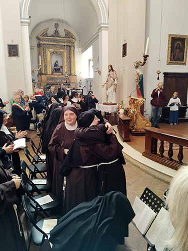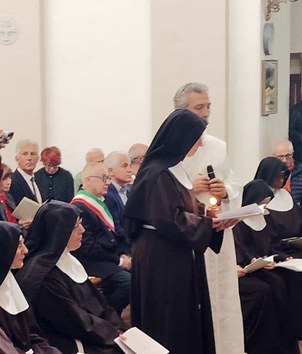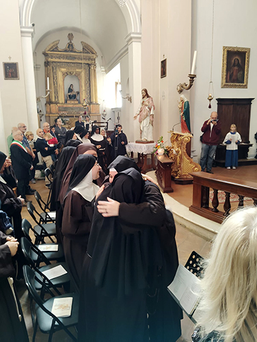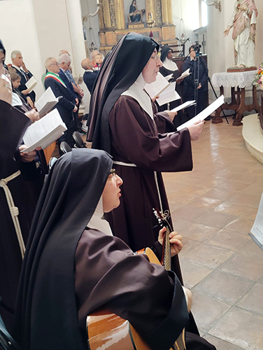 Il rito della professione si è svolto nella chiesa Collegiata del paese che per l'occasione era gremita di fedeli presieduto dal nostro Vescovo, Mons. Domenico Beneventi. Ed è proseguita con un bel momento di festa nella foresteria del nostro monastero con il pranzo e un pomeriggio insieme. Ringraziamo il Signore per tutto quello che ci ha donato di vivere e affidiamo ancora una volta la vita di Rita all'intercessione del padre San Francesco perché il Signore porti a compimento in lei tutte le sue promesse.